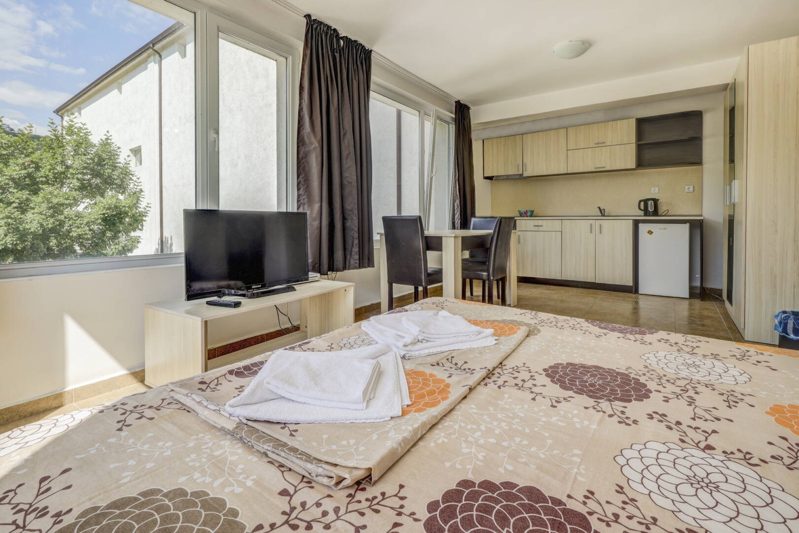– Просторният хол и самостоятелната спалня Ви дават възможност за лично уединение и пълен релакс.